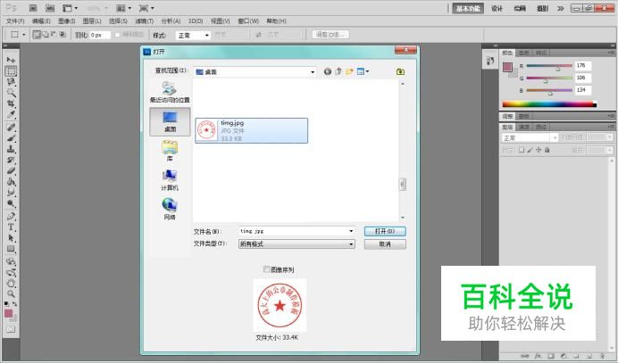 一般印章图片都是扫描纸质文件得到的,打开图片,看到右边的图层显示为“背景”,后面还有一把小锁,这是不可编辑的,按住“Alt”键,鼠标双击“背景”,它就变为图层0,就可以编辑了;