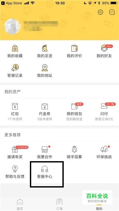 然后点击客服中心,如下图所示。