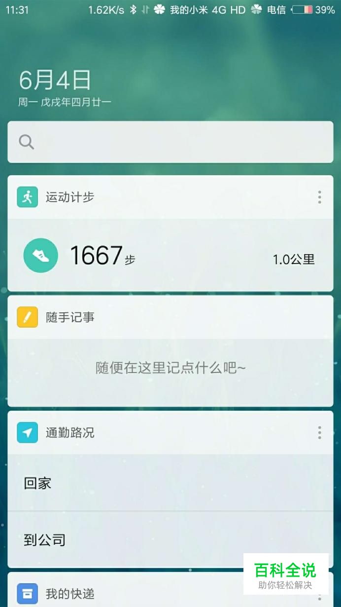 在手机桌面的情况下往左滑动会出现负一屏,里面有记步信息以及生活指南等,想要关闭就返回桌面;
