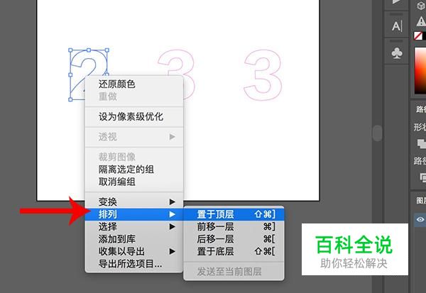 接着调整图层的顺序,右键点击之后选择排列,然后调整图层位置即可。