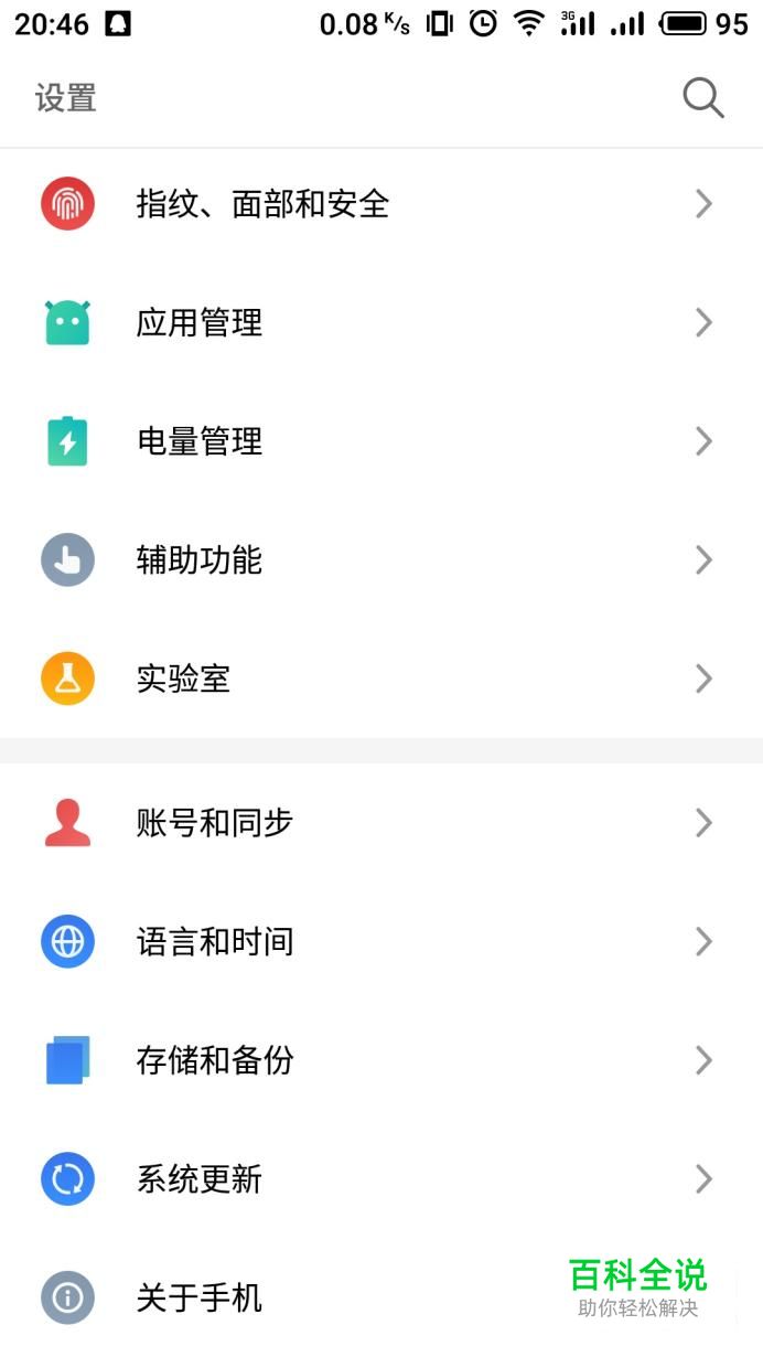 解锁手机进入手机系统设置界面,在选项中点击“电量管理”