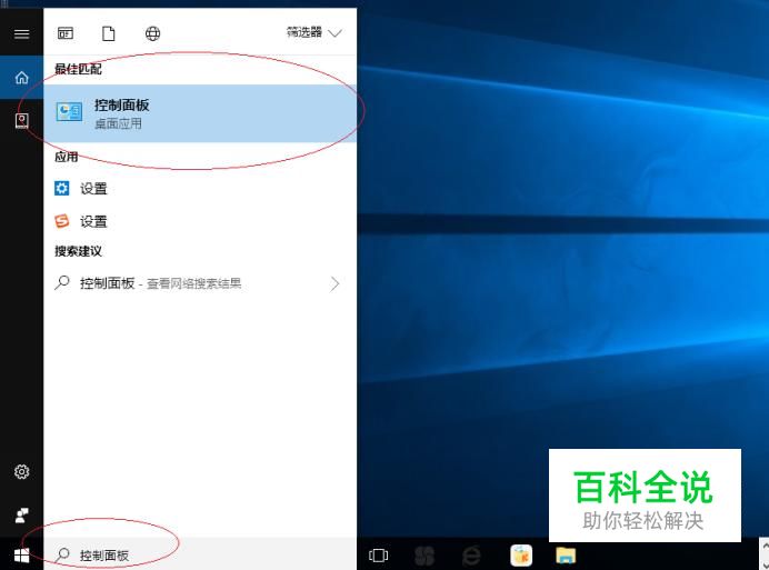 如图所示,搜索框输入"控制面板"。Cortana(小娜)显示搜索结果,点击"最佳匹配→控制面板"项。