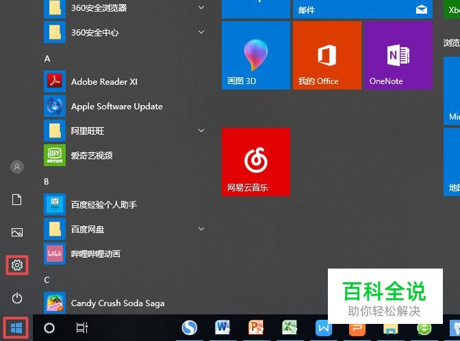 首先,我们点击电脑左下角的微软按钮,弹出的界面,我们点击设置;