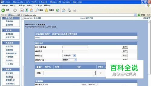第一步:用管理员权限登录论坛并进入后台管理界面,点“数据库->资料恢复”。