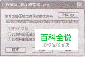 步骤2 系统下载在弹出的【正在修复】对话框中选择压缩文件的类型和修复的文件所要保存的目录,设置完成后单击【确定】按钮,如图2所示。