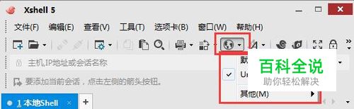 打开xshell,然后点击工具栏上的编码按钮,在弹出的选择栏中,选择需要的编码即可,具体如图所示