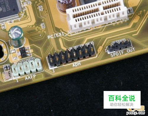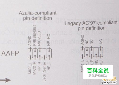 上图中便是扩展的音频接口。其中AAFP为符合AC97’音效的前置音频接口,ADH为符合ADA音效的扩展音频接口,SPDIF_OUT是同轴音频接口,这里,我们重点介绍一下前置音频接的安装方法(见下图)。