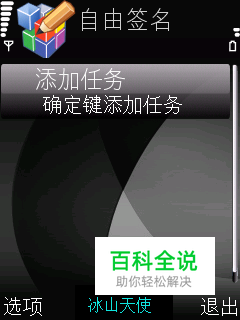 现在是签名软件了:打开自由签名-按确定键添加任务-找到要签名的软件-选项-添加-选择-选择操作签名-确认-选项-执行。完成后签好名的软件就在原来的文件夹里,后缀名是signed. sisx。(比如coreplayer. sis变成了coreplayer_signed. sisx)。这个软件就可以安装了。(去除签名的方法和签名一样,选择操作去除签名)