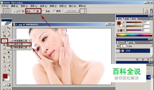 单击工具上的修补工具,【 记住单击- 选择修补源工具】如图: