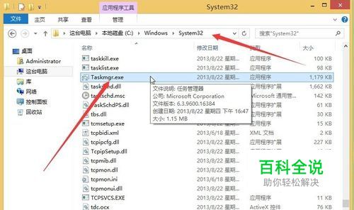 打开C盘,然后依次点击Windows\system32文件夹,在该文件夹下找到taskmgr.exe文件