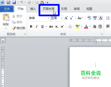 打开Word2010后,点击菜单栏的“页面布局”按钮。(如图)