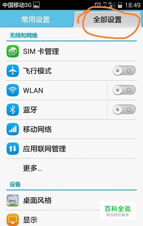 进入设置后,选择“全部设置”一栏。如图: