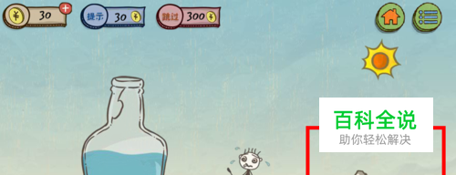 这一关就是学习的 乌鸦喝水。要把石头放到瓶子里。石头太大就摔坏就行了。拿起来放下 连摔几次就好了。然后把小石头放瓶子里。