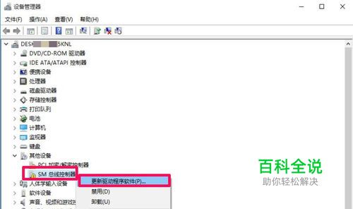 更新驱动步骤首先介绍如何更新损坏的驱动程序,如果没有备份的驱动程序(包含驱动光盘),可以用驱动精灵软件,自动更新,但我有备份的驱动,当然安装原版的更好,首先从“此电脑”右键->管理->打开“设备管理器”,有两个设备驱动没安装好,先选择其中一个进行更新。