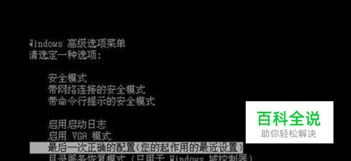 开机按F8(小白不知道什么时候按,可以开机一直按F8)直到出现图1为止,选择最后一次正确配置。有的时候按F8会先出现启动项选择,如图2、图3,按ESC取消后接着按F8即可。