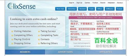 进入网站后,在网站主页便可看到Clixsence的注册框,在框内输入注册信息即可,记住一定要用名字拼音填写,先填名字,再填姓氏!