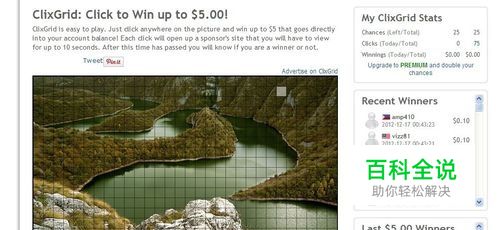 其次,Clixsense还有其他的赚钱方式,比如ClixGrid(抽奖)赚钱、tasks完成任务赚钱以及完成offers调查赚钱。只需点击下面图中的小方框即可抽奖,每位免费会员每天有25次抽奖机会,每次抽奖浏览广告需10秒;高级会员每天有50次抽奖机会,每次抽奖浏览广告只需5秒。注册任务按每个任务的具体要求完成,至于调查则只需完成问卷填写就行。