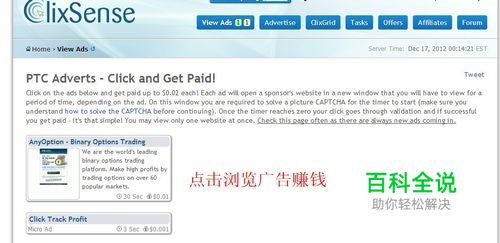 下面是Clixsence会员区的介绍,请点击view ads开始浏览广告