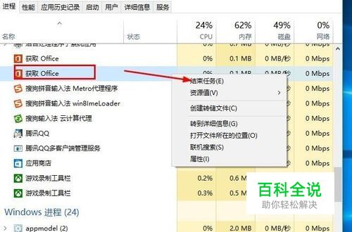 关闭的方法是选中该进程,按下快捷键Alt + E可以快速关闭进程,也可以右击关闭。