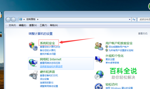 在挑出来的对话框里面单击“系统和安全”对话框。