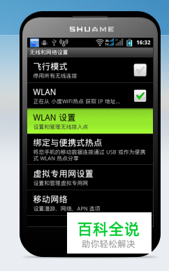 依次进入手机“设置”->“无线和网络”->“WLAN管理”界面。