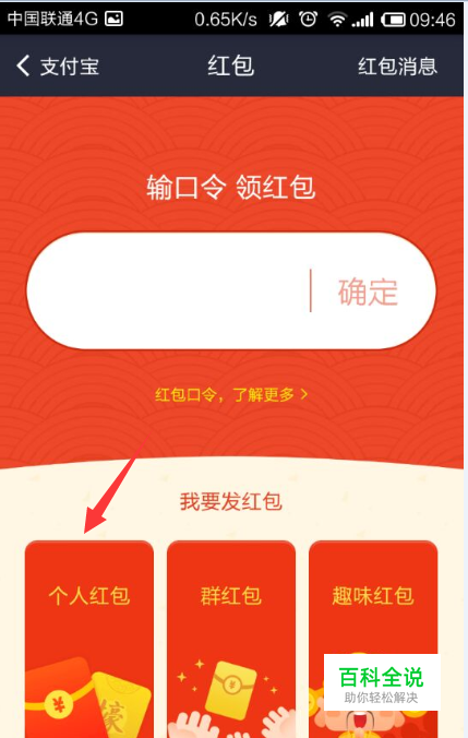 进入发红包界面,我们可以看到红包形式分别有【个人红包】【群红包】【趣味红包】,点击个人红包