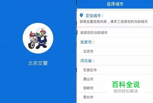 首先打开,北京交警app选定一个城市。这个大家随便选一个就可以了。