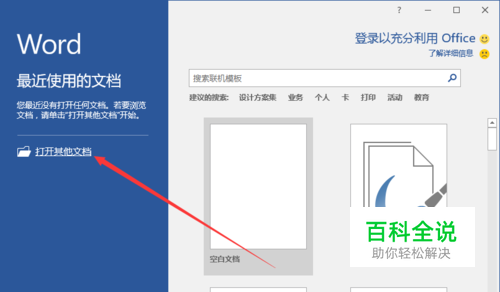 1、鼠标左键双击计算机桌面Word2016程序图标,将其打开运行。并点击“打开其他文档”选项。打开需要编辑的Word文档。如图所示;