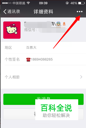 2、通过通讯录点击微信好友时,我们进入的便是他们的详细资料,大家直接点击右上角的菜单键进入;