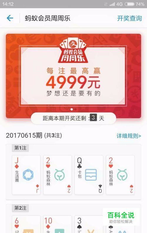 下面是小伙伴们最期盼的开奖了!! 开奖时间:每周三晚上8点。可以通过周周乐页面进入,观看开奖直播。时间过后,也可以查看开奖视频回放,主页面上也会有开奖结果。或者【开奖查询】,也可以查历史开奖结果 获奖后,支付宝通过红包的形式发放到支付宝账户。