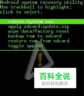 同时按住手机的电源键和音量下键(三星手机需要按住电源键+音量下键+主菜单键),等待出现recovery界面(全是英文)