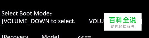 2.关机状态长按“音量下+电源键" 使用第二种方法进入会出现以下画面,选择Recovery Mode (以下所有操作中 音量减=选择,音量加=确认)