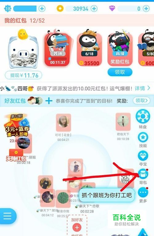 在“抢红包”界面点击“背包”,里面的“我的时装”即是已经装载了的装备。