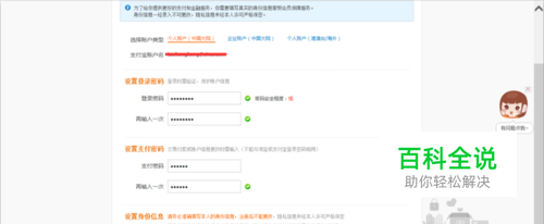 设置身份信息,填写登录密码、支付密码和实名身份信息(此时无需填写真实姓名,身份证号,可待支付宝账号正常登陆后进行实名认证)。