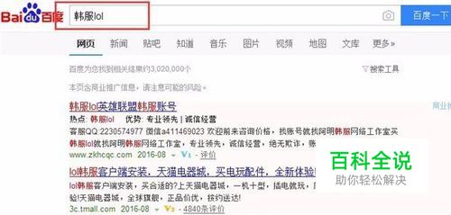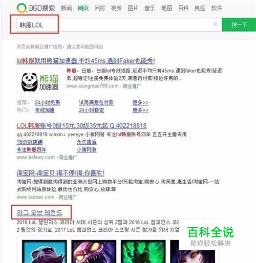 打开网页,搜索韩服lol,找到韩服官网,点击进入,搜索结果可能不一样,但是下面两张图片上的都是韩服官网,只要注意看网址就可以了