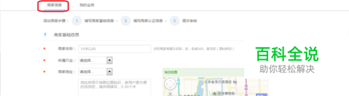 进入登录页面后,点击商家信息(下图1,点击红圈中的文字),根据认证公司的真实信息及资料,依次填写下方各个选项,红色圆点选项为必填项,无圆点部分为选填项。
