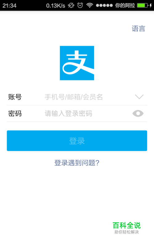第一步,打开手机上的支付宝,输入账号和密码登录