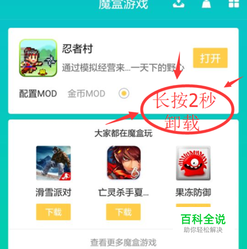 众所周知,GG大玩家的魔盒游戏,是需要安装在魔盒里的,但是卸载的话,很多人都不会,长此以往,手机就会被占用太多内存,再喜欢的游戏也安装不上了,怎么办?今天小编就来教教大家吧!