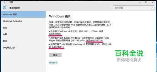 Windows10-10240版系统更新时先出现错误0x80070422,然后又出现0x8024001e和错误。
