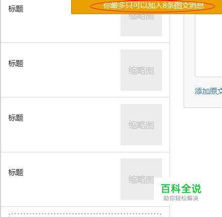 如果不愿花钱进行微信认证就想每天多发几条消息,那就只能在那一条消息里多发几篇资讯了。 每条消息最多添加8篇资讯。 下图为我不断添加图文消息框后,平台提示的信息: