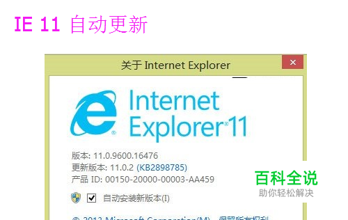 点击”关于Internet Explorer“进入其页面,勾选”自动安装新版本“,如下图所示: