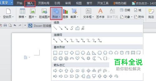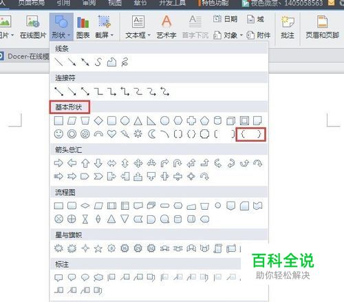 在形状出现的下拉选项中,选择基本形状里面的大括号
