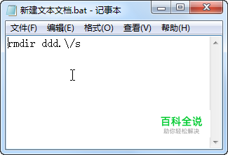 保存并更改扩展名为bat,与要删除的文件夹放在同一目录下,如图