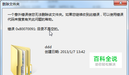 删除文件夹 却提示“错误 0x80070091:目录不是空的。”无法删除,与你分享实测完美解决的办法