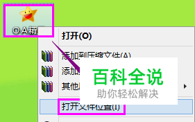 首先,需要找到 不需要启用DEP的应用程序的 安装位置,在后面添加的时候需要 按路径找到该应用程序。在桌面快捷方式上 右键单击,选择 “打开文件位置”命令。(如果是XP系统的话,按路径: 右键单击快捷方式→属性→快捷方式选项下的查找目标) 注意: 如果不需要设置 不启用DEP的应用程序或服务 的话,此步骤可以忽略,而直接从第③步进行设置即可,而在第⑦步中勾选 “为除下列程序之外的所有程序和服务启用DEP” 后,直接点击 “确定” 即可,不用添加。而下图中的用OA精灵作为例子,只是讲解找到应用程序安装位置的步骤,在第⑦步中一定 不要添加 上出现“access violation at address”问题的OA应用程序,否则,此应用程序还是无法执行。
