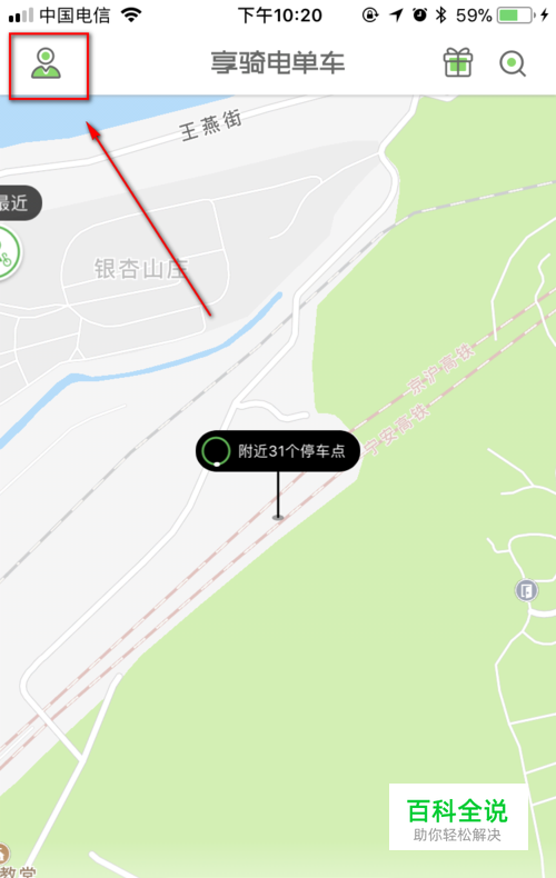 打开享骑电单车APP,点击左上角的个人中心按钮