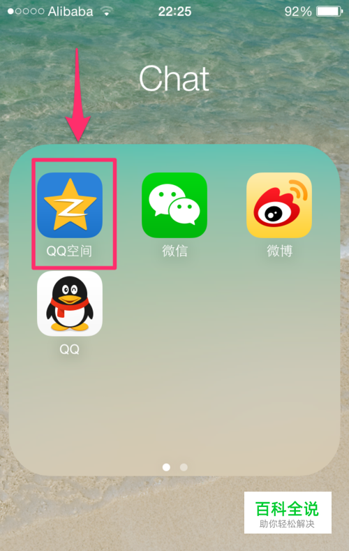 打开自己的iPhone,在应用程序中找到“QQ空间”客户端,并点击进入下一步。
