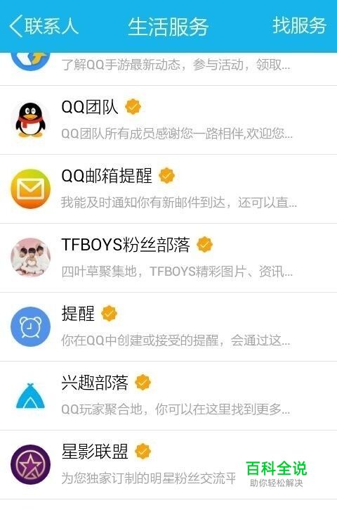 在联系人里找到生活服务,点击进去。