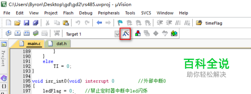 打开keil软件,这里我们已经默认打开了一个工程文件了 点击我画圈的那个按钮,进入设置