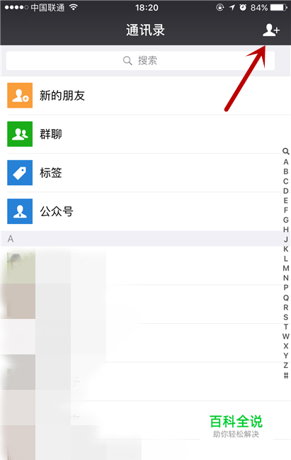 进入到通讯录界面之后,我们可以在界面右上角的位置看到添加好友的图标,点击进入。